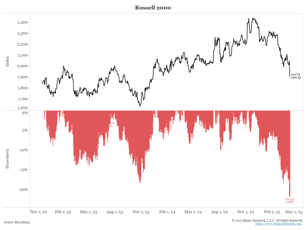 Yesterday, the small-cap Russell 2000 was a media-defined bear market. R2000 futures down another 4%