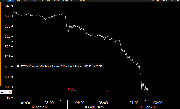 *STOXX EUROPE 600 INDEX FALLS 5.2%, MOST SINCE MARCH 2020