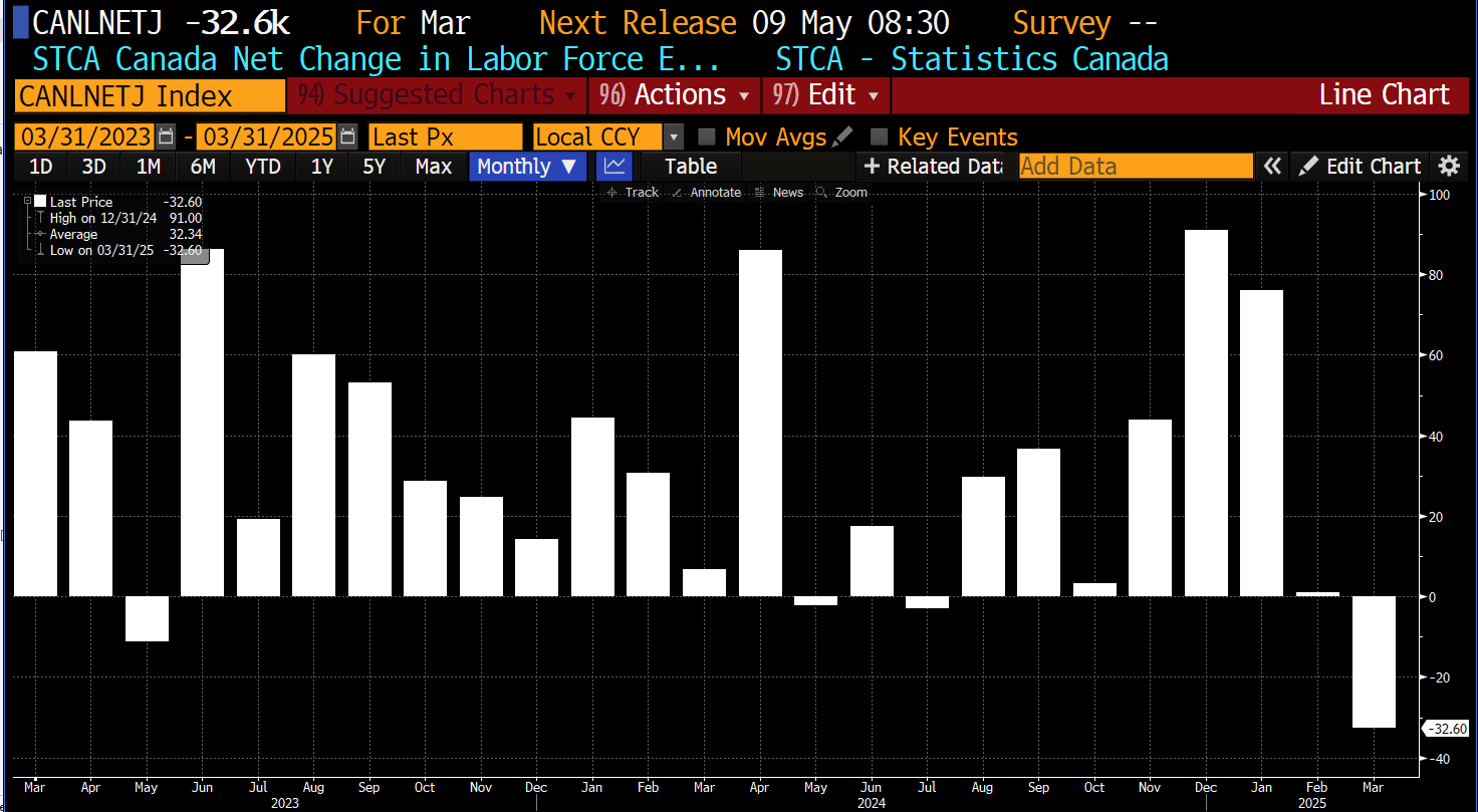 Canadian Payrolls … see the last two months (Feb and Mar) since tariff talk turned white hot.