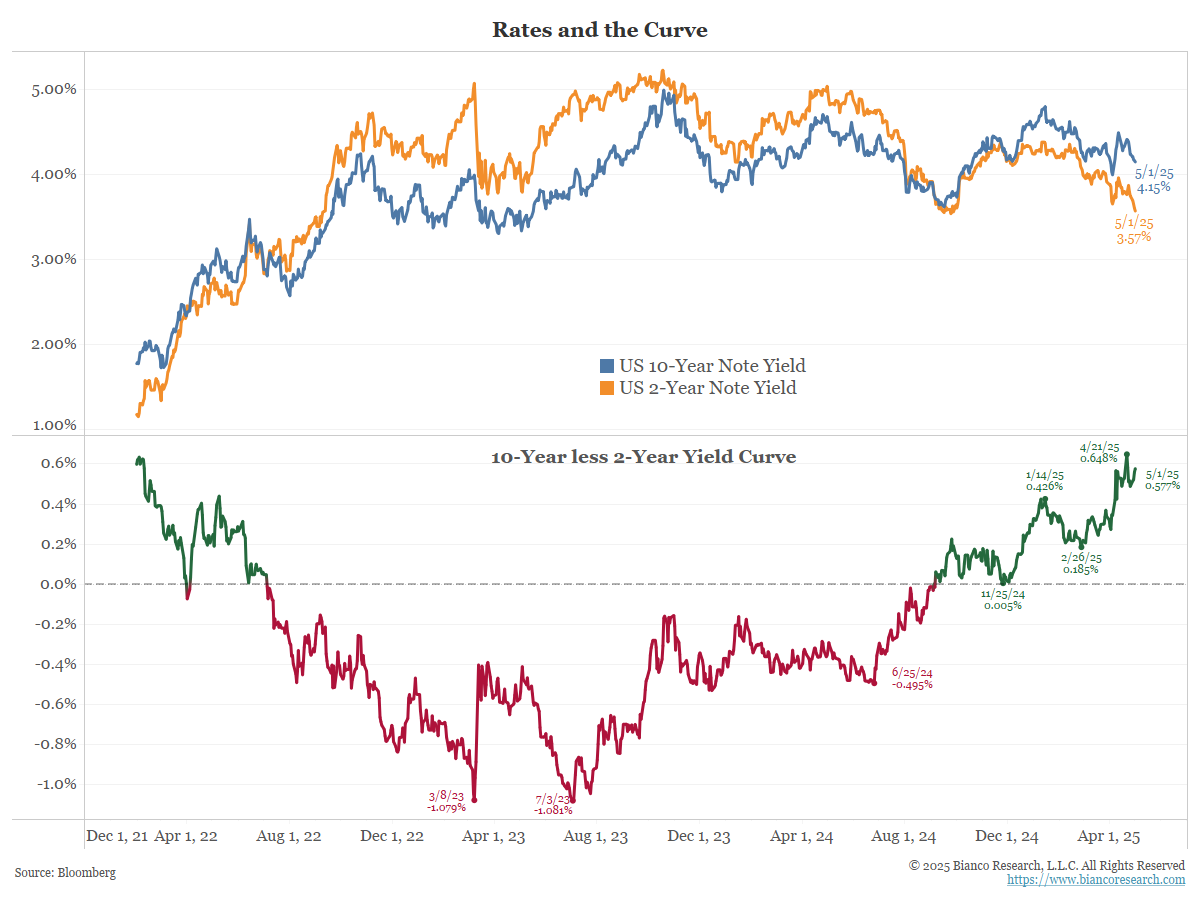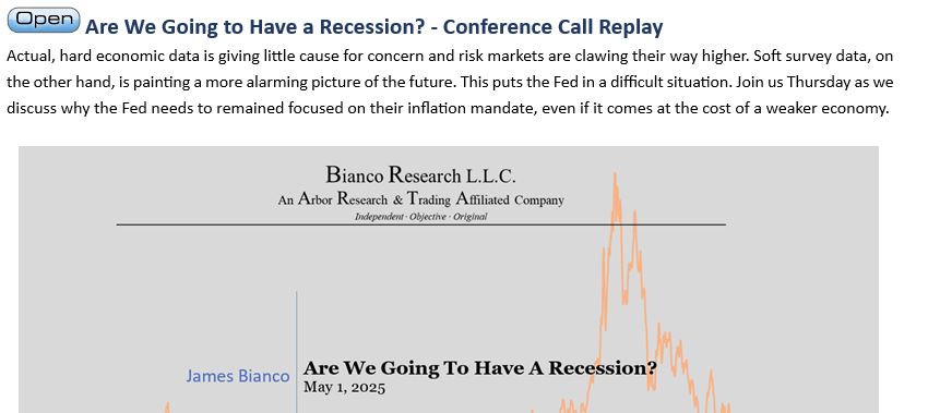 - 50-50 chance of a recession occurring but this could shift dramatically in either direction within the next 90 days due to unusual economic circumstances of realigning the global trade system.