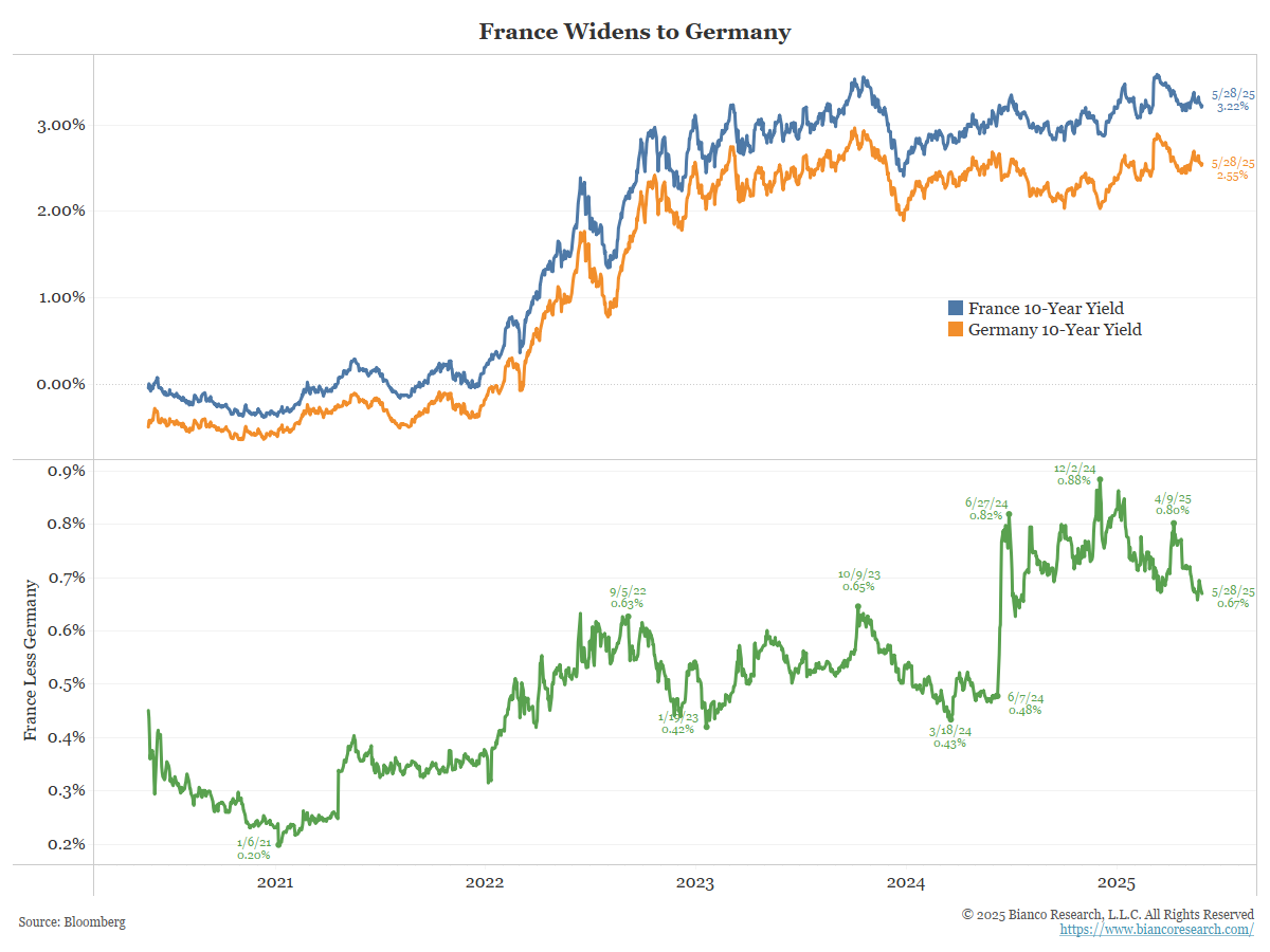 Jim Bianco: This is evident in the bond market … French 10-year OATS have been widening vs German 10-year Bunds the last few years.