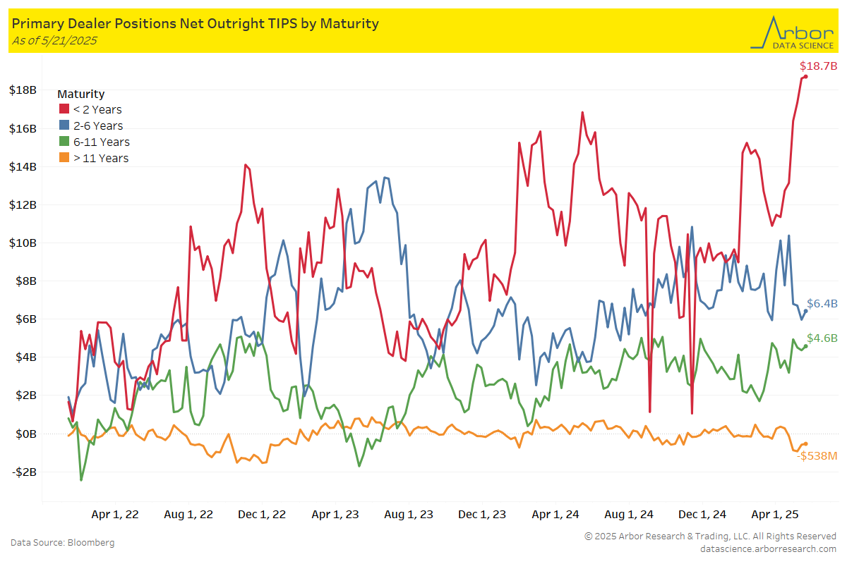 - 6 – 11 years: $4.4 Bn on 5/14/25 to $4.6 Bn on 5/21/25 = $0.2 Bn