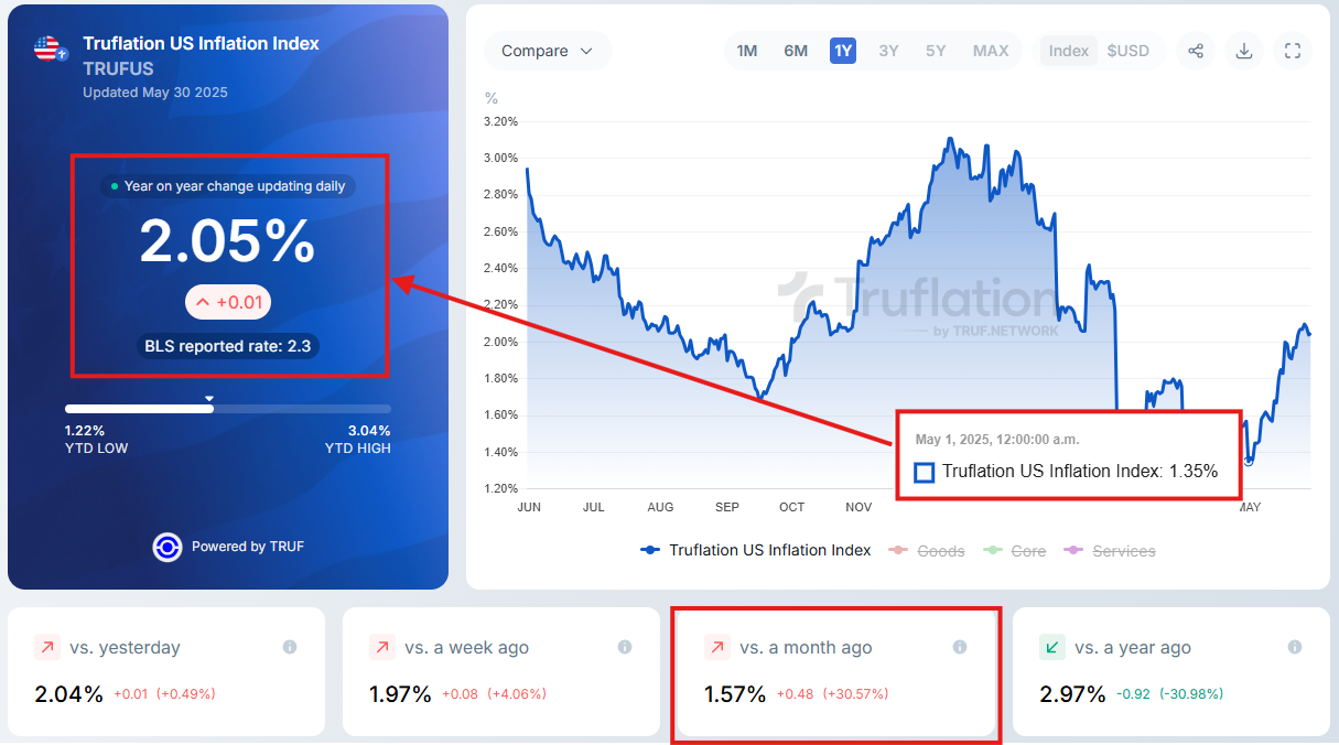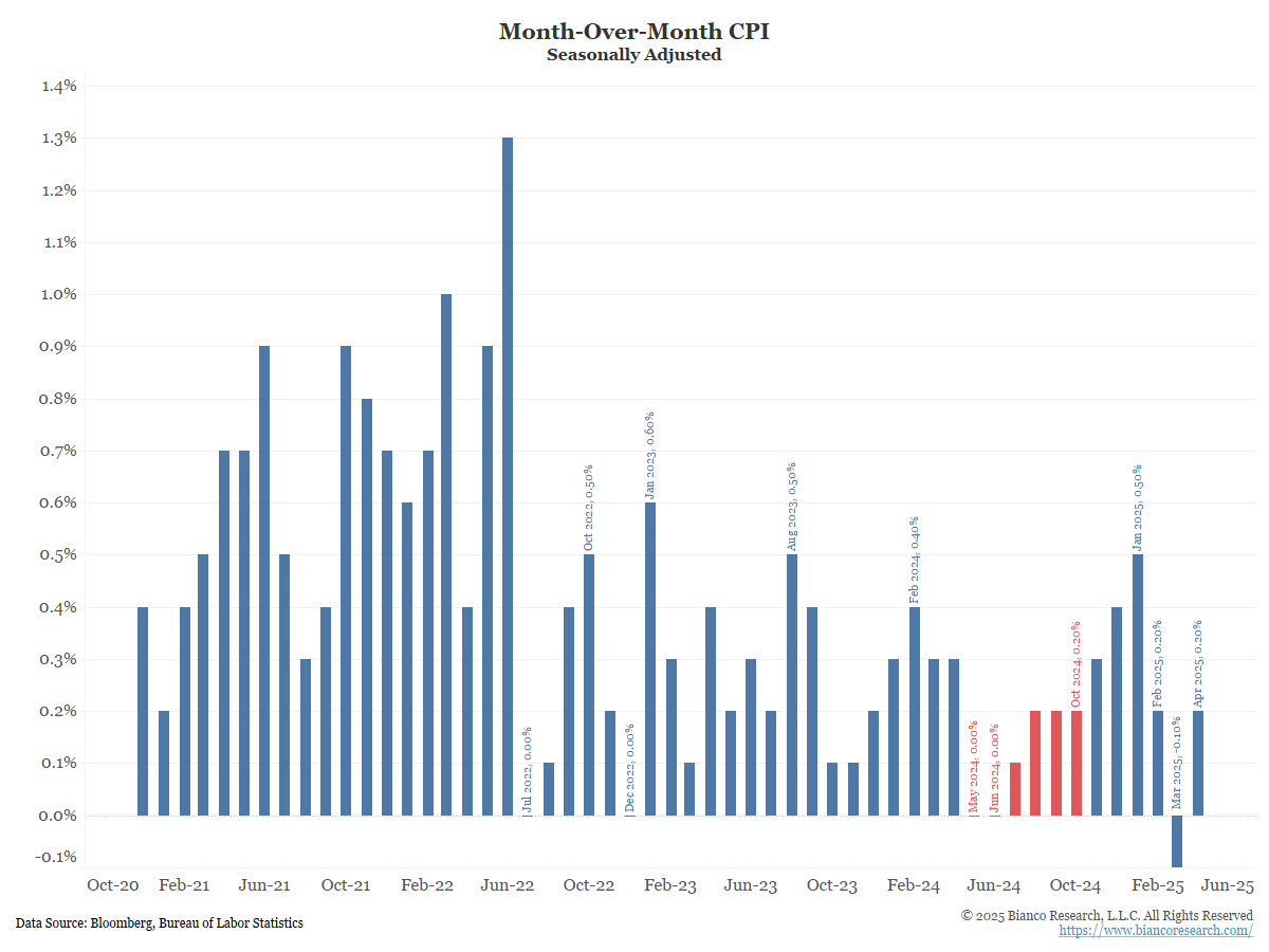And the CPI was zero in May and June 2004, so the base effect suggests that the year-over-year CPI, which is now 2.3%, is likely to increase significantly in the next month or so.