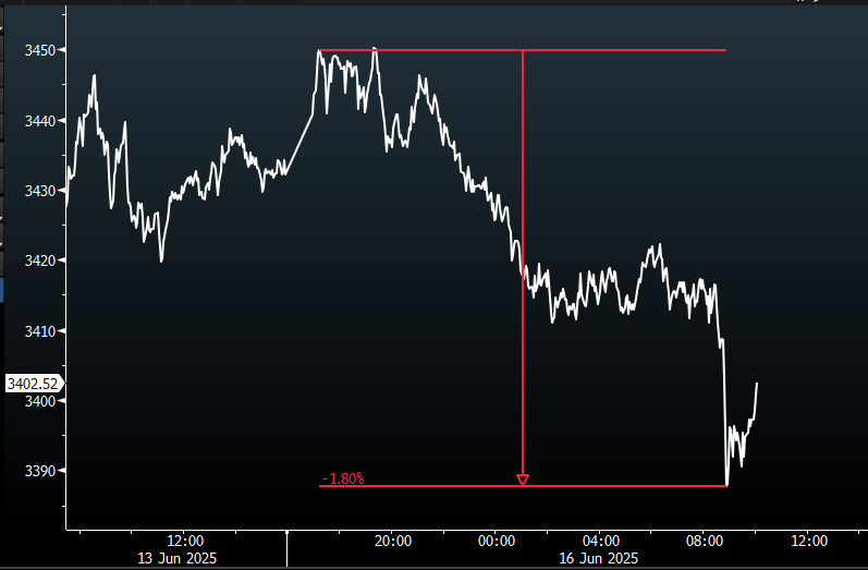 The last 24 hours of gold trading … also acting like the war is about to end.