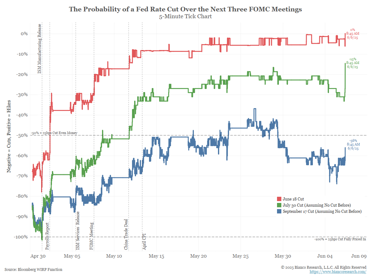 Odds of a July cut now just 15%. Sep odds effectively 50/50