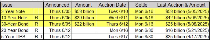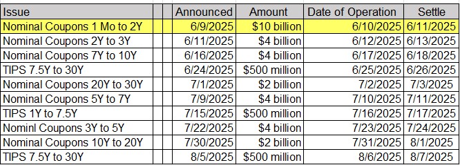Upcoming US Treasury Supply