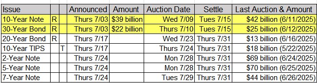 Upcoming US Treasury Supply