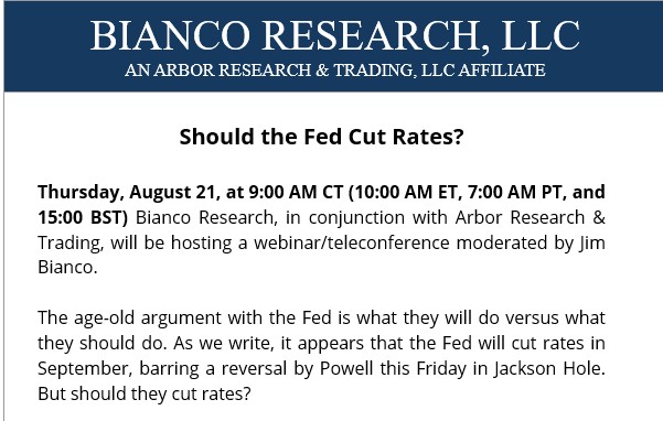 Join us for our Next Conference Call Thursday: Thursday, August 21st, featuring Jim Bianco
