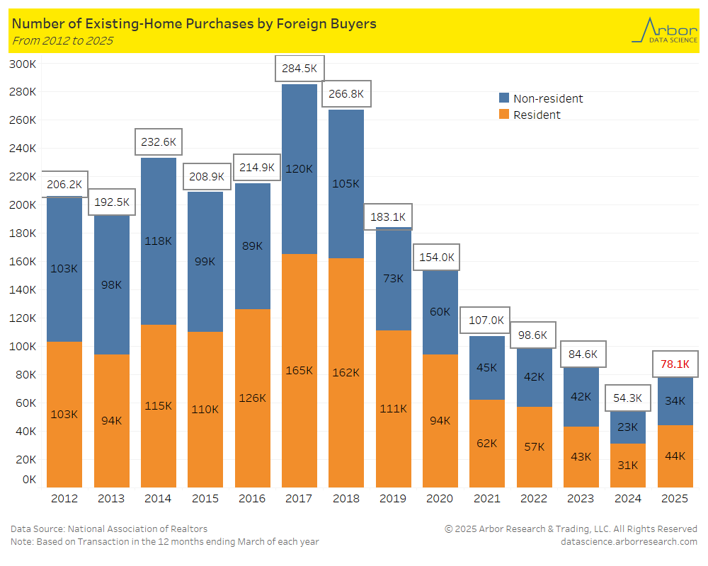 Arbor Data Science: International Home Buyers Increased for the First Time in 2025 Since 2017