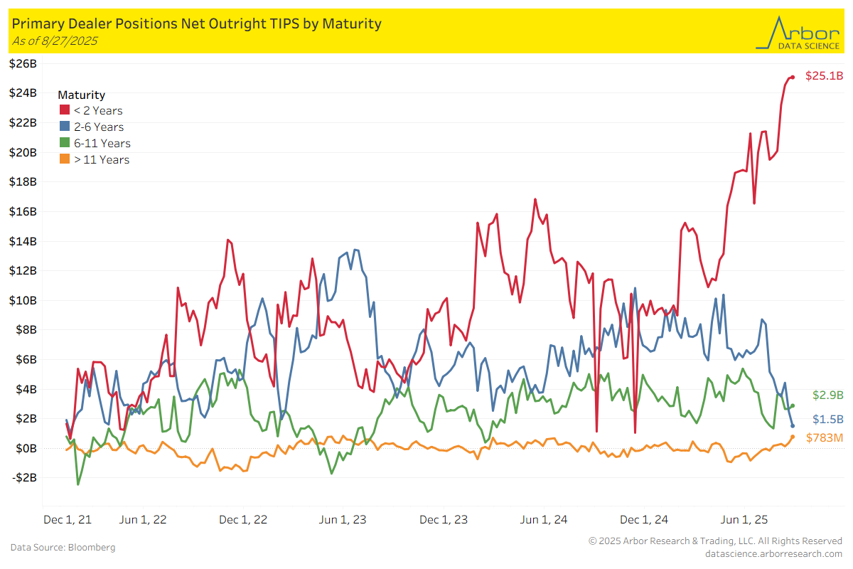 - 2 – 6 years: $2.5 Bn on 8/20/25 to $1.5 Bn on 8/27/25 = ($1.0 Bn)