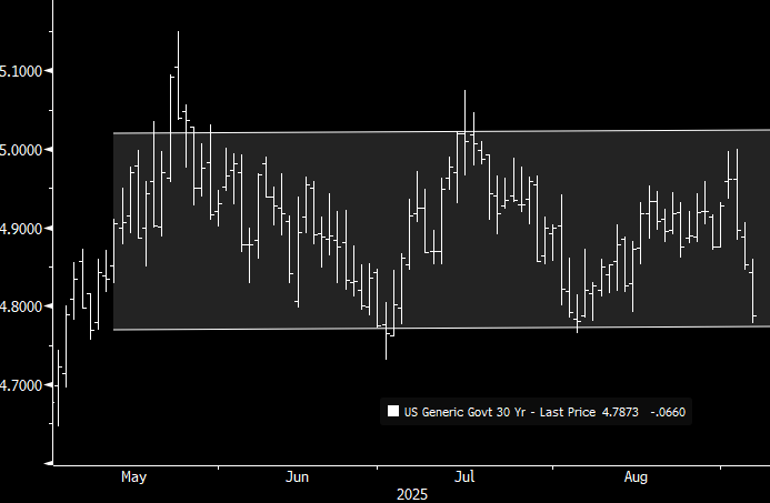 - Friday’s range for UST 30y: 4.765% – 4.86%, closing at 4.77%