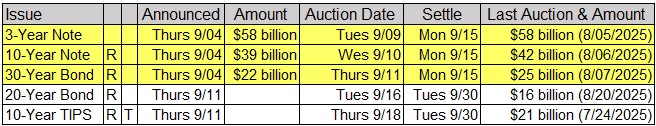 - 9/11/2025 at 08:30am EST: Initial Jobless Claims & Initial Jobless Claims 4-Wk Moving Average